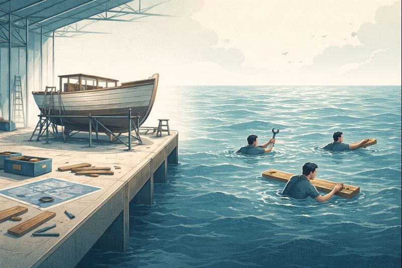 We build boats in dry docks. But right now, we’re in an ocean — surrounded by the parts to build a boat, with no dry dock in sight. We have to figure out how to build while treading water.